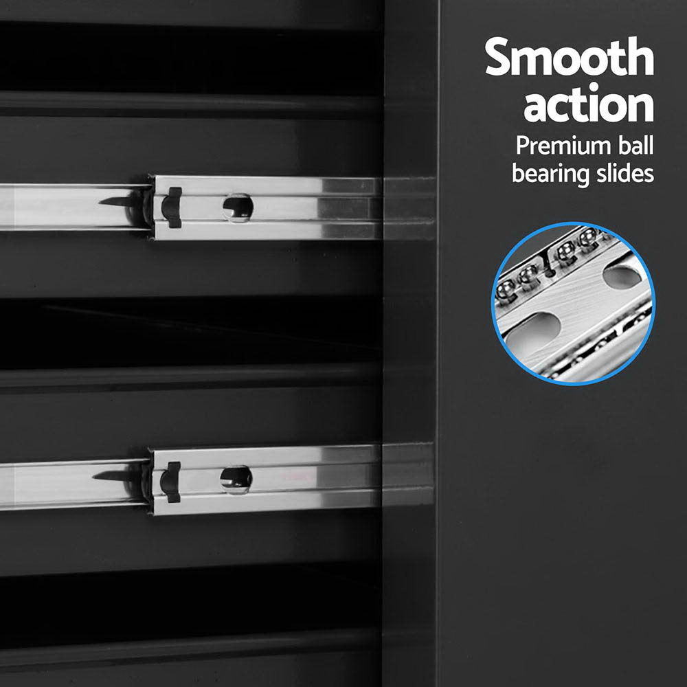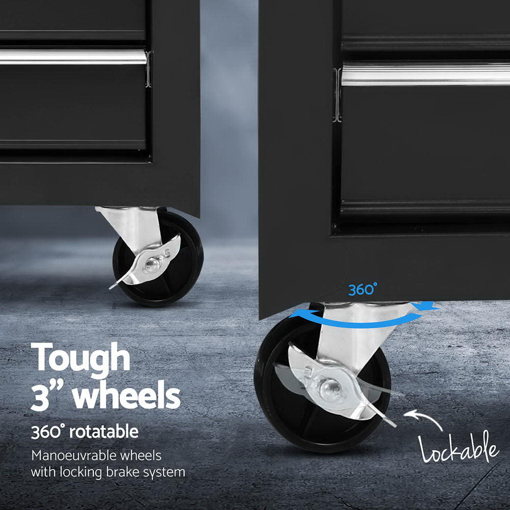 Giantz 15 Drawers Tool Chest Trolley Toolbox 2-in-1 Storage Black