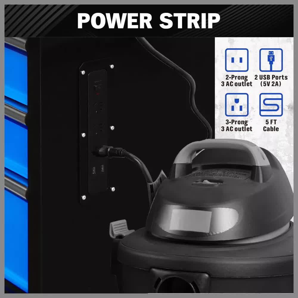 HORUSDY 42 inch 8 Drawer Tool Cabinet 1000 lbs Wood Top Power Strip Casters Blue