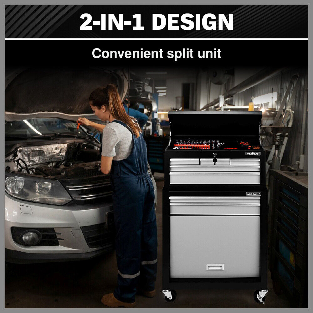 HORUSDY 7 Drawer Tool Box Trolley Cabinet Storage Cart Garage Toolbox Organiser